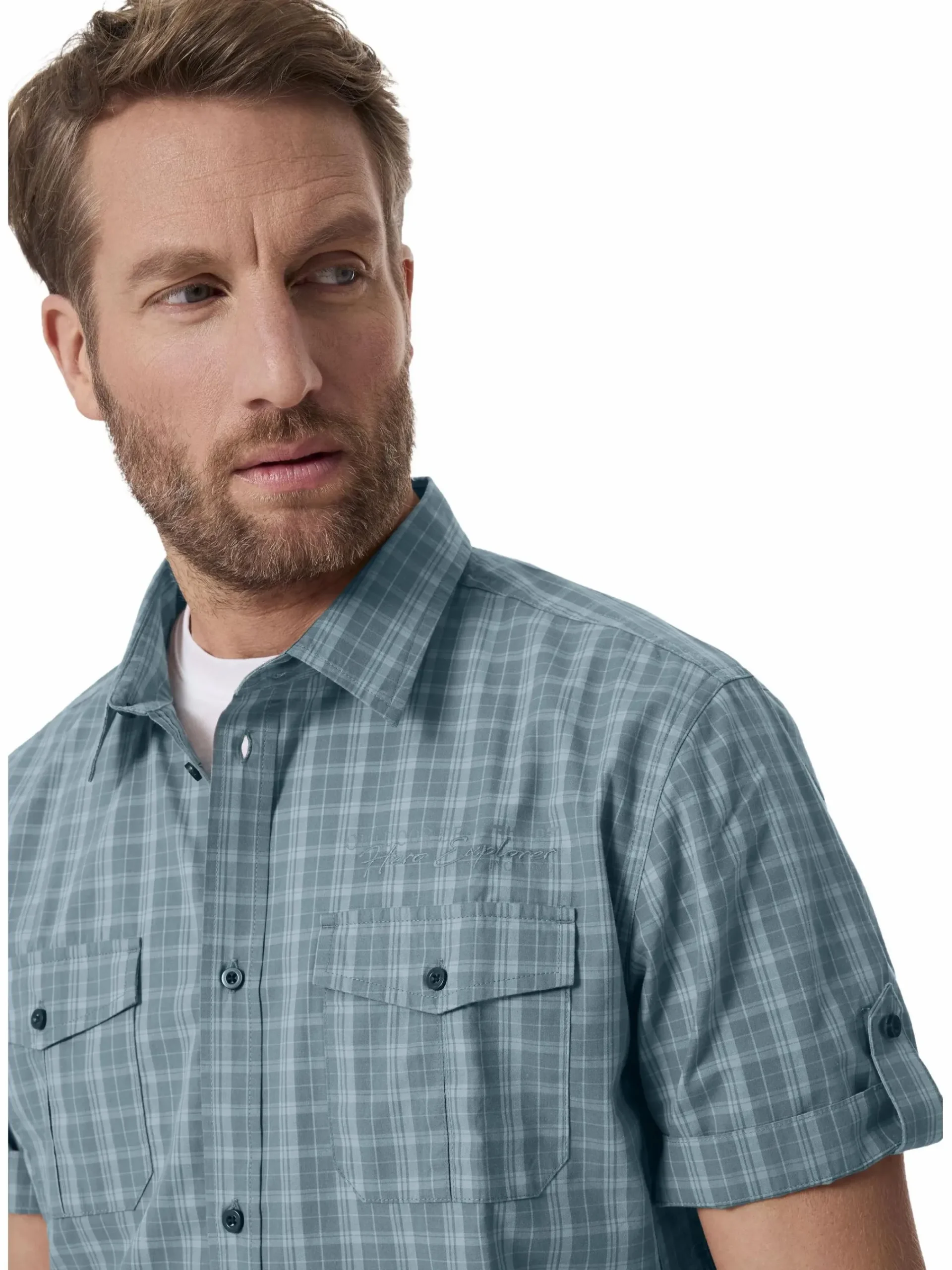 - Kurzarm-Design mit hochkrempelbaren Ärmeln und Riegelverschluss