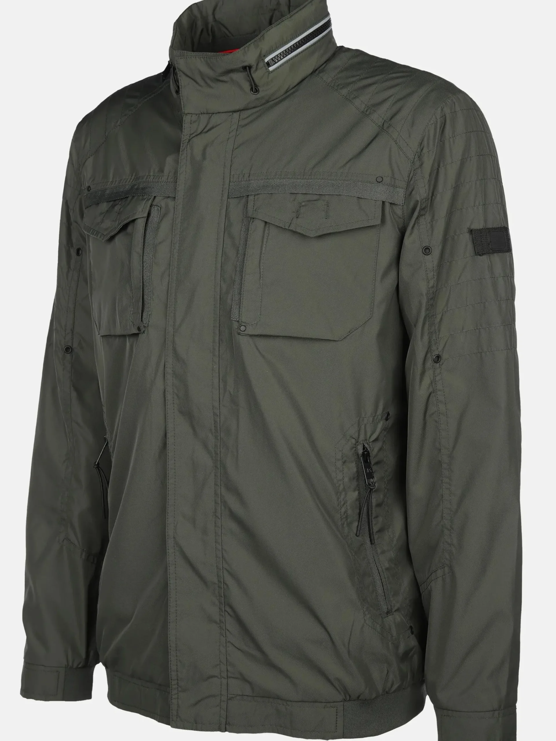 - Reflektierband am Stehkragen mit innenliegender Kapuze