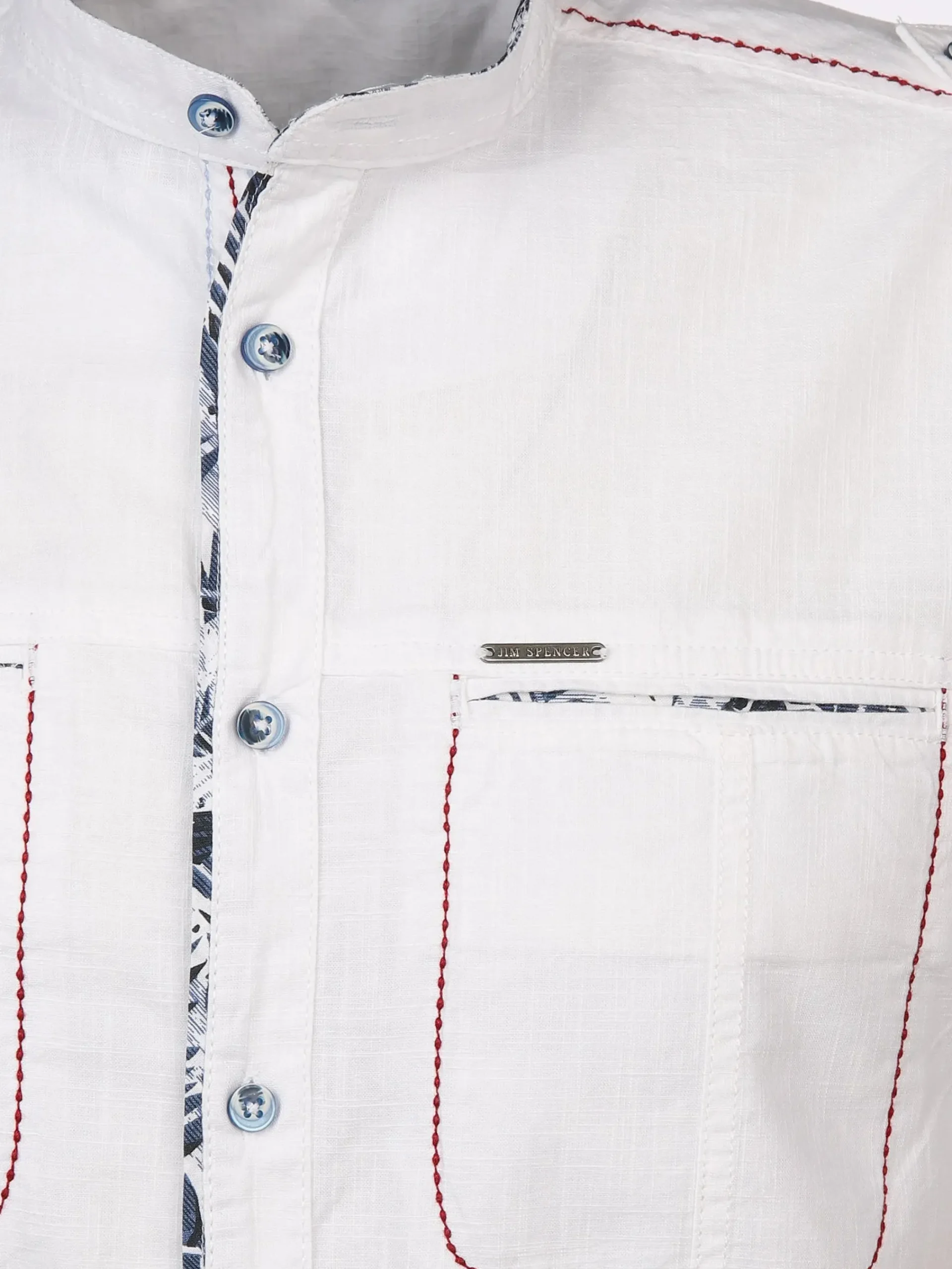 - kleiner Stehkragen mit farbigem Nackeninnenband