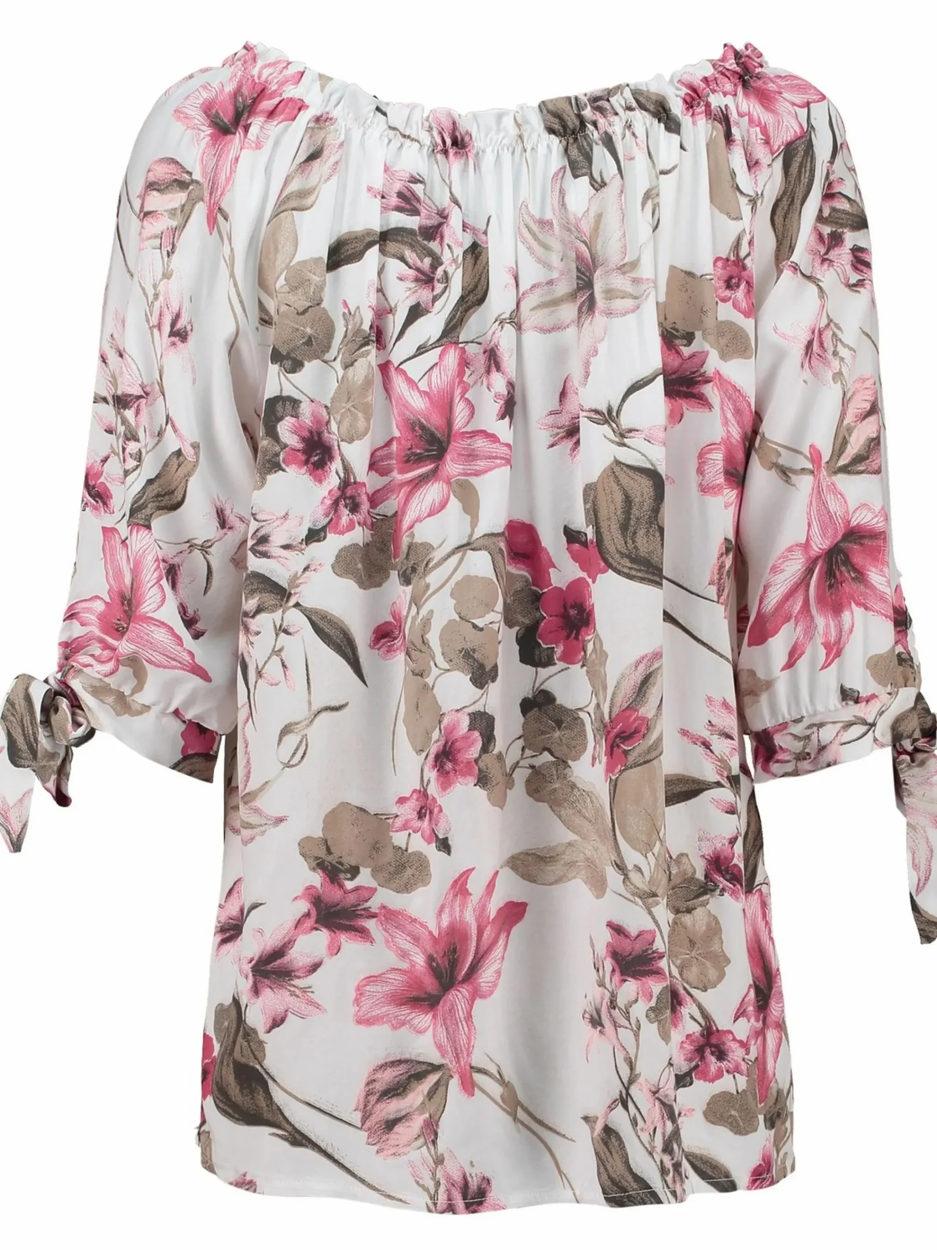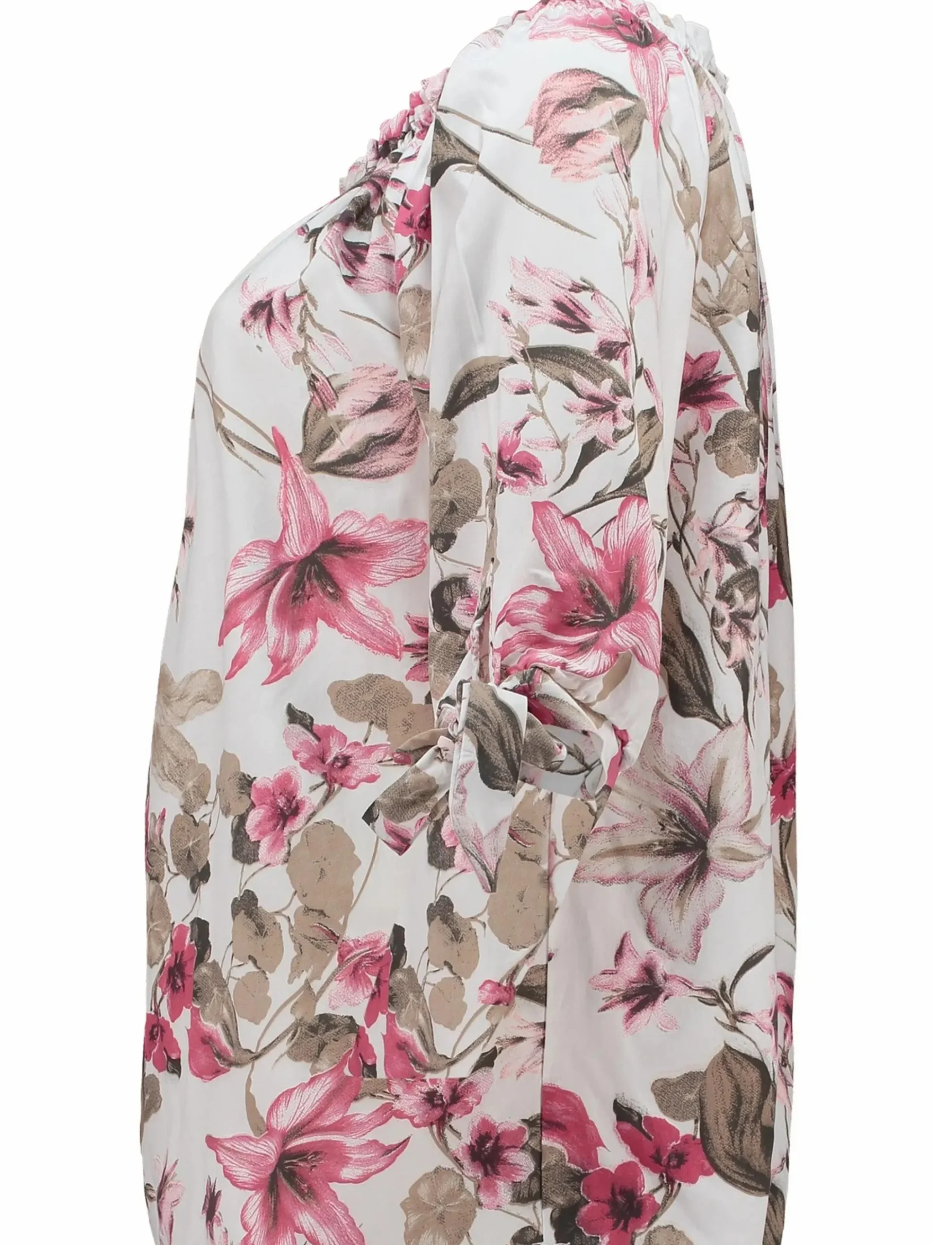 - In zartem Offwhite mit pinkfarbenem Blumenmuster – ideal für Frühjahr und Sommer